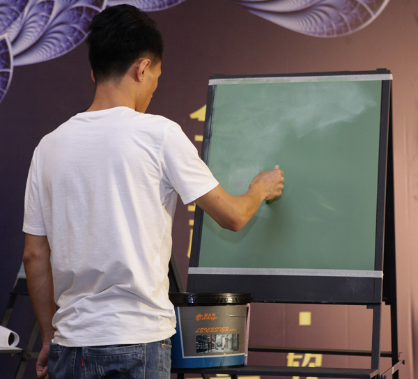 為讓蒙太奇經銷商更直觀感受藝術涂料施工過程,羅總攜技師人員,現場演示并講解施工注意事項。臺下經銷商家人仔細觀看,認真聆聽,有疑問現場提出,并得到專業解答。