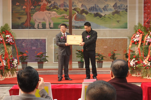 朱秘書長為涂裝藝術(shù)體驗館頒發(fā)“人居環(huán)境生態(tài)藝術(shù)涂料交流中心”銅牌