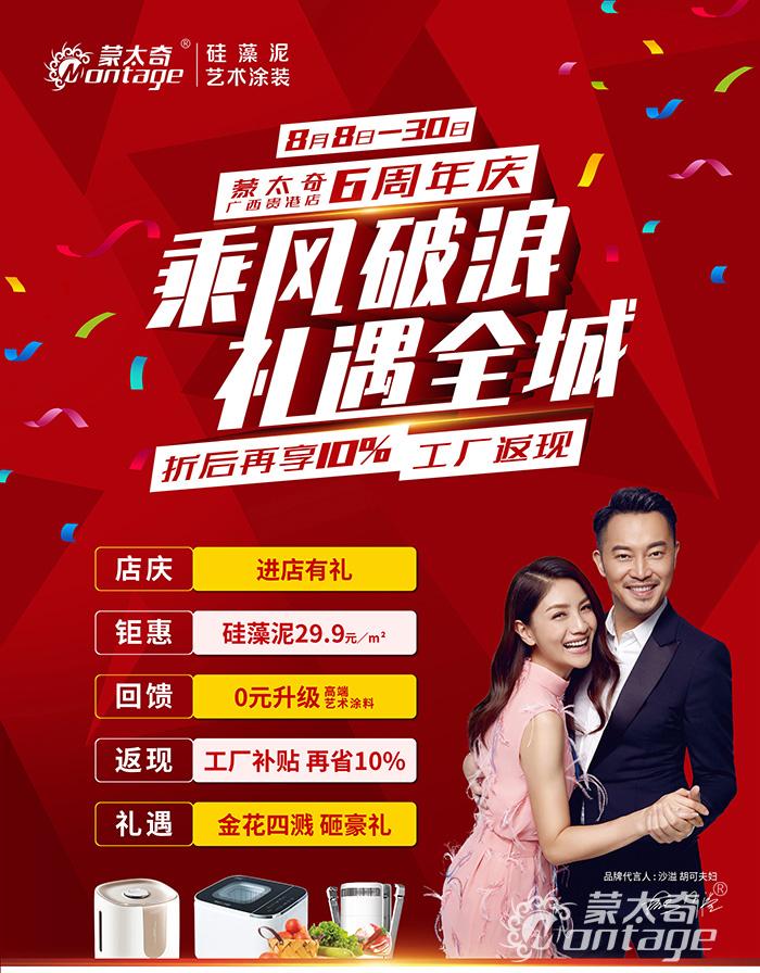 蒙太奇廣西貴港店6周年慶活動正在火熱進行中,此次活動優(yōu)惠多多,不僅有0元升級藝術涂料、還有預付定金參與工廠補貼,更有驚喜砸金蛋等多重好禮!